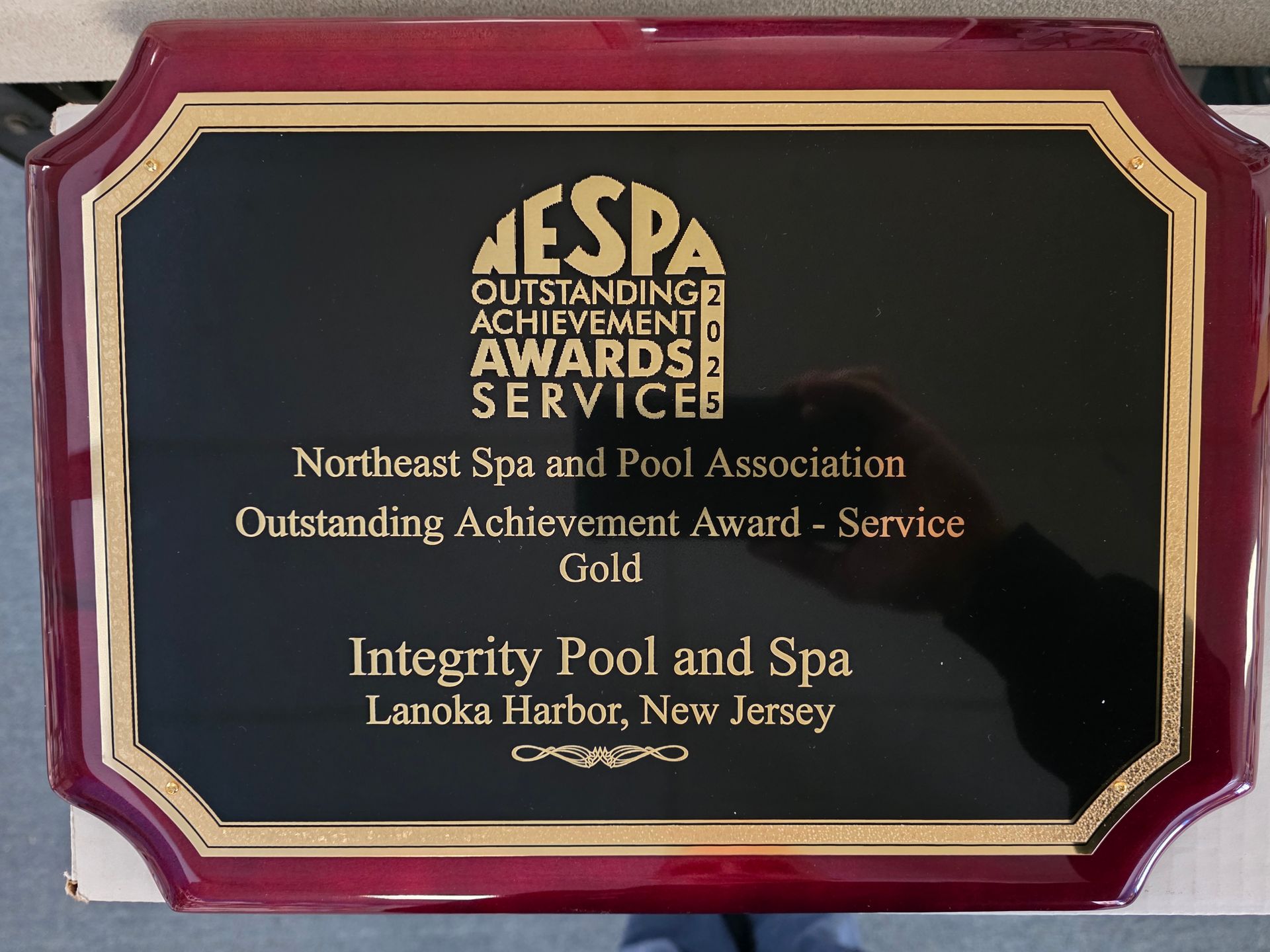CONTINUED SUCCESS! We follow this theme every year at Integrity Pools and Spas and strive to improve upon the previous year's accomplishments! The proof of our "Continued Success" rests with us receiving the 2025 Northeast Spa and Pool Association (NESPA) Outstanding Achievement Award for Service Excellence Gold Medal. This year marks a full 20 years that we received NESPA Award's for Service Excellence, including 19 Gold Medals and 1 Silver Medal. The NESPA Outstanding Achievement Award for Service identifies and recognizes companies that show a commitment to customers and service excellence. This award covers a four-state area! We are extremely proud of these accomplishments, since we are the only company to have won every year since the award's creation in 2006. However, the honor and privilege of winning the last 20 years could not have been possible without our wonderful customers being there to recommend and support us along the way. We are blessed in having customers that allowed us to achieve this success! At Integrity Pool and Spa, we work diligently to live by the company motto of "Pride In All You Do," which not only reflects the proud military heritage of our family, but also is a strong indication of why we have thousands of loyal service and retail customers returning each year.
